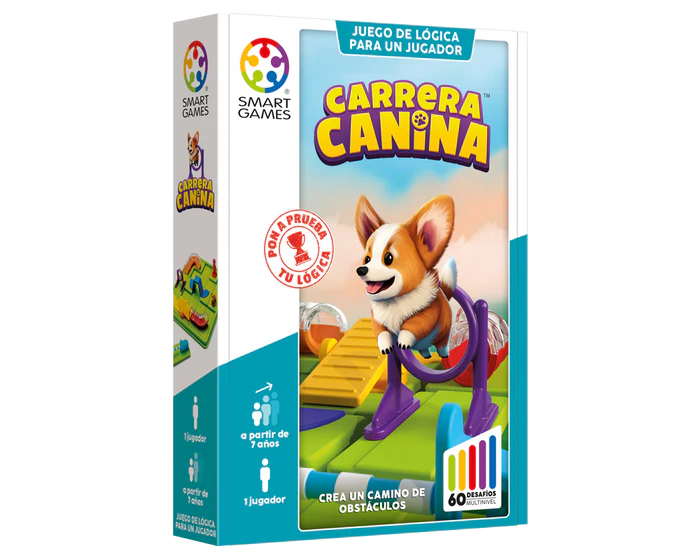 Enséñale trucos nuevos a tu perro con Smart Games. ¡No te olvides de pasar por todos los obstáculos! Un nuevo desafío para los amantes de los perros, con 60 desafíos que te obligarán a analizar cada paso en busca de una solución. Con Carrera Canina aumenta la dificultad progresivamente a la vez que mejoras tus habilidades lógicas.