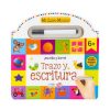 Mi libro mágico. ¡Escribe y borra!, es un libro en forma de mochila. con pluma mágica y borrador. De manera sencilla, los niños completan los ejercicios para trazar letras o números, realizar actividades divertidas y escribir sus primeras palabras. Además pueden identificar figuras geométricas, formas, colores o aprender nuevas palabras.